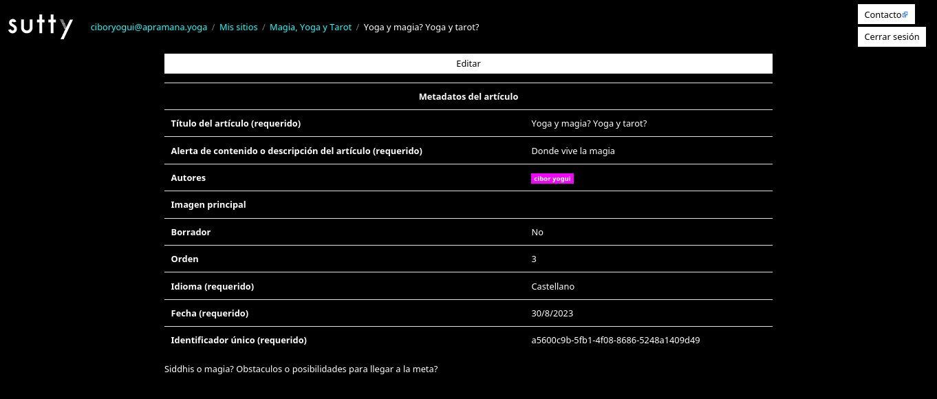 Serás redirigide automáticamente a la vista de artículo y sus metadatos (o sea, los datos de tus datos).