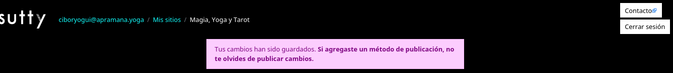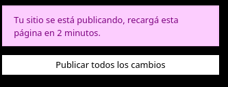 Para que las modificaciones en tu sitio tengan efecto, será necesario que publiques todos los cambios desde el botón en la columna izquierda. El sitio se construye todo junto de una vez en un lapso de algunos minutos, por lo que recomendamos editar y giardar todos tus cambios antes este paso. Cada vez que el sitio se haya construido, recibirás un correo de confirmación.