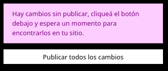 Una vez en tu panel, para que los cambios tengan efecto, deberás publicar todos los cambios, haciendo clic en el botón. En efecto, verás un aviso con letras violetas y fondo rosa con la leyenda “Hay cambios sin publicar, cliquea el boton debajo y espera un momento para encontrarlos en tu sitio”.