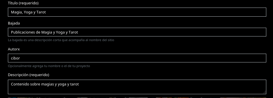 A la vez, el “acerca” sirve para configurar otros datos en tu sitio. Por eso hay pueden encontrar algunos campos que no se vean en tu perfil del Fediverso.