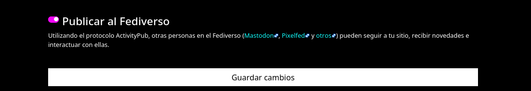 Ve a la Configuración de tu sitio y activa el toggle “habilitar la publicación en el Fediverso”