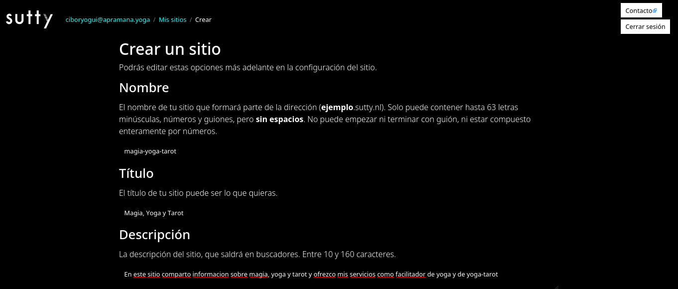 Elige el nombre de tu sitio, que será único y tendrá el formato enelfediverso.sutty.nl